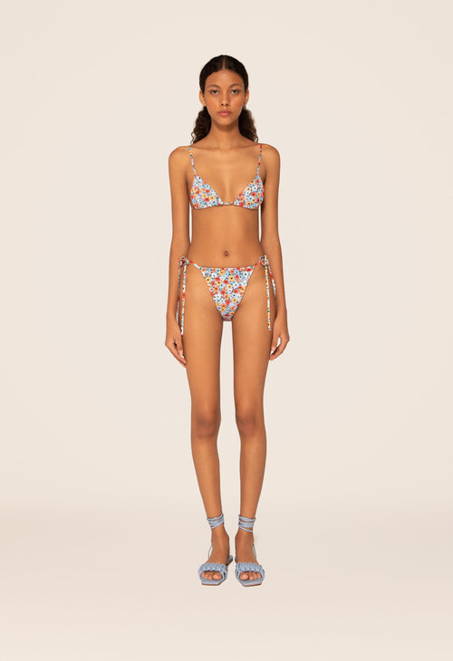 Our bikini collection, a testament to Agua by Agua Bendita's remarkable attention to detail and skilled craftsmanship, presents each set as a canvas, decorated with beautiful prints reflecting the richness of our colors, patterns and geometrical forms. The high-quality fabric, the refined prints, and the precise hand-embroidered details create masterpieces full of elegance and refinement.