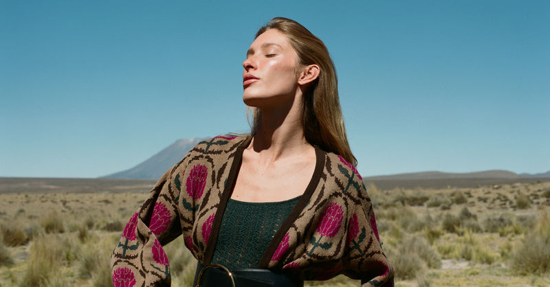 This collaboration features a venture into knitwear with the use of graceful fabrics, including Baby Alpaca and Wool, as well as never-before seen silhouettes in Agua by Agua Bendita.