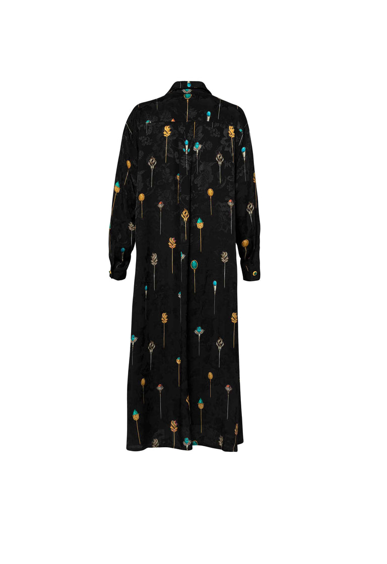 The 'Frida Ornamento' maxi shirt dress is as fabulous as it is flattering. Made using a sumptuous jacquard viscose, this piece can be styled as a dazzling cover-up or a striking day-to-night dress.