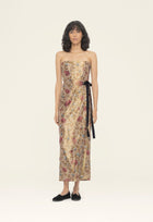 Newly added, our Cinefila Memoria maxi dress in cotton and metal fiber is the perfect night celebration attire, with a delicate decorative bow on the side, this piece becomes the epitome of sophistication.
