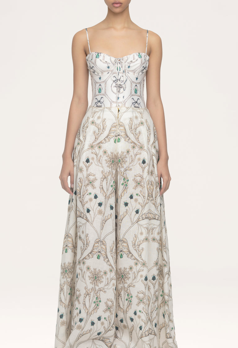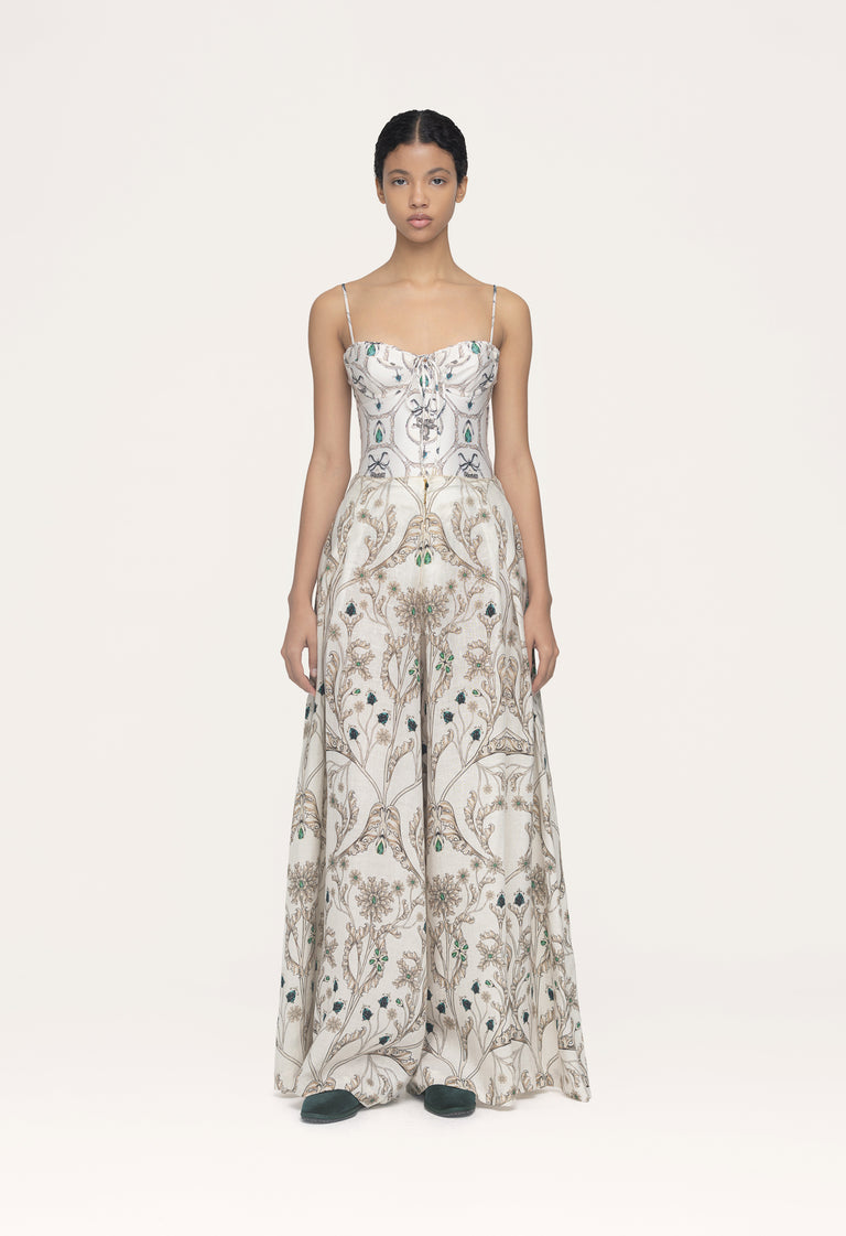 Equal parts flattering and charming, our 'Marea Alhaja' trousers in airy linen pair perfectly with our new 'Cornalina Alhaja' corset. This garment has concealed zip fastening along the back.