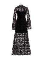 Our Arcilla Paramo sophisticated long-sleeve maxi dress is crafted from a fabric adorned with tone-on-tone sequin embroidery and finished with decorative buttons at the waist. A refined silhouette designed for evening moments, where texture and craftsmanship quietly shine.