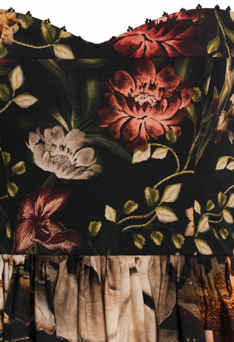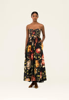 Our Tonia Páramo dress is one of Agua’s newest silhouettes, designed to take you into the night. The perfect occasion dress for any formal event. Featuring a strapless design, delicate lace details at the hem, and a sophisticated floral print, it’s an effortless match for any celebration, from weddings to holiday gatherings.