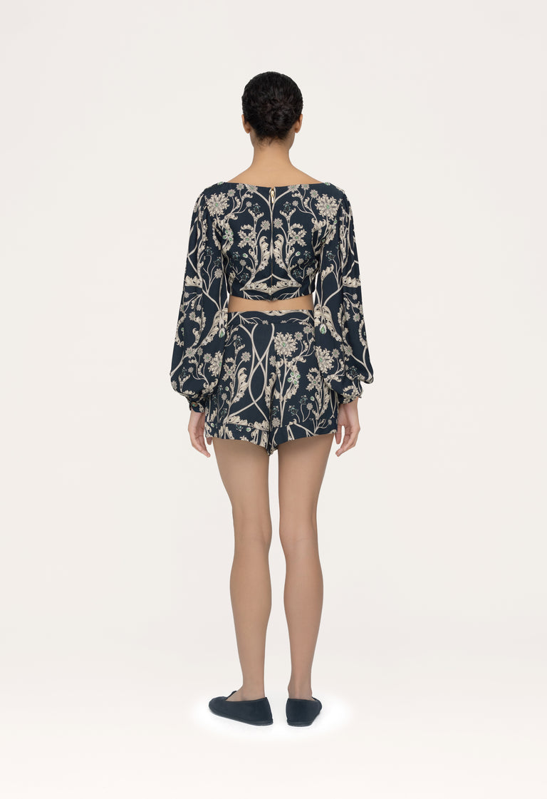 With a striking square neckline and lovely balloon sleeves, our 'Pera Gema' crop top looks stunning with our 'Toronjíl Gema' shorts. This garment features concealed zip fastening along the back and was made using recycled viscose.