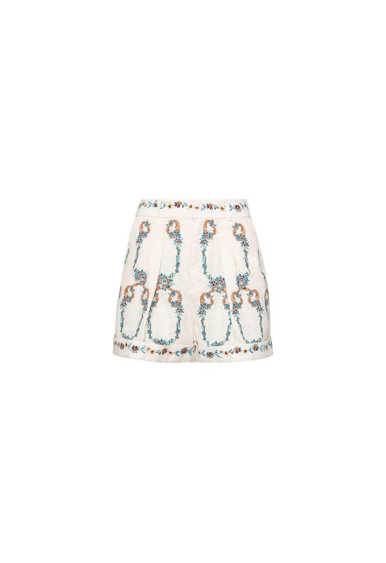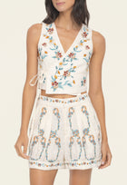 New this season, our 'Romy Florero' shorts are the epitome of summer. Featuring exquisite embroidery this piece will become a favorite of the season. Pair it with our 'Bella Florero' vest for a stunning look.