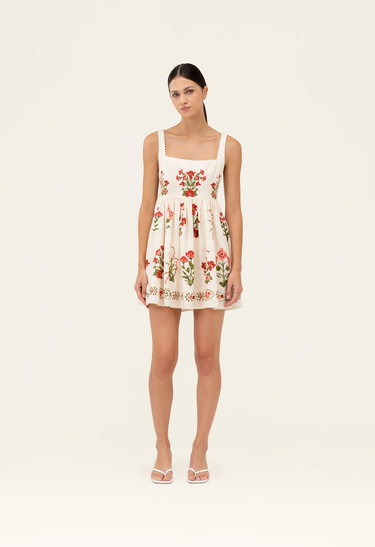 With a sleek square neckline, a lovely A-line silhouette, and concealed zip fastening along the back, the ´Barbara Mini Canna´ mini dress in pure linen transitions wonderfully from sunny brunches to beachside soirées.