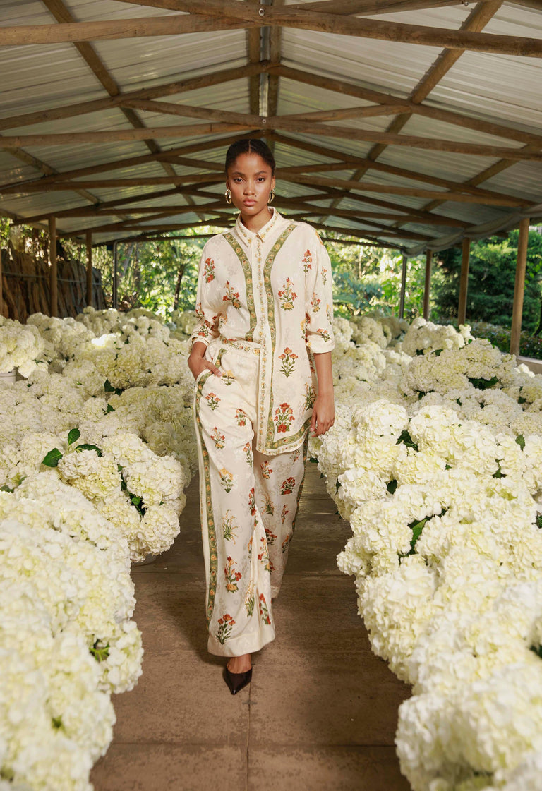 Our ´Cecilia Canna´ button-down shirt is as chic as it is versatile with it’s delicate floral print. Create a flawless look by wearing it with our matching ´Tota Canna´ trousers.