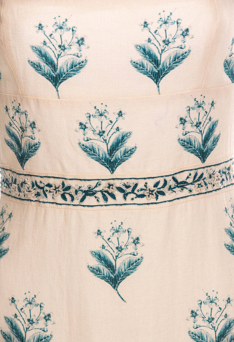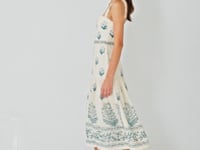 With a sleek square neckline, embellishment details, and concealed zip fastening along the back, the ´Nispero Ceiba´ midi dress in pure linen transitions wonderfully from sunny brunches to beachside soirées.