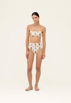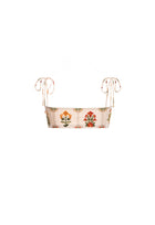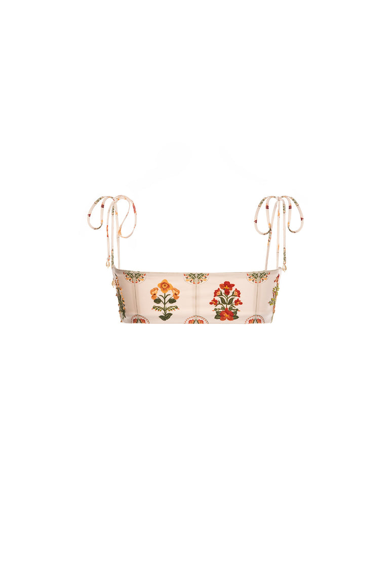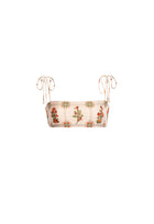 Our ´Primavera Canna´ is a lovely bandeau bikini top with exquisite hand-embroidered details. This piece pairs wonderfully with our ´Magenta Canna´ bikini bottom and our ´Luna Canna´ pareo. This piece is made using recycled polyester. Our swimwear garments offer up to UPF 50 sun protection.