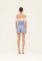Our ´Pimienta Madera´ cropped top in airy linen has an off-the-shoulder neckline, darling balloon sleeves, and detailed embroidery. For a perfect garden party outfit, pair it with the ´Romy Madera´ shorts.