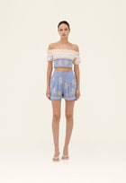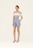 A season favorite, our ´Romy Madera´ shorts are the epitome of summer. Featuring exquisite embroidery this piece will the ultimate summer chic look. Pair it with our ´Pimienta Madera´ cropped top for a stunning look.